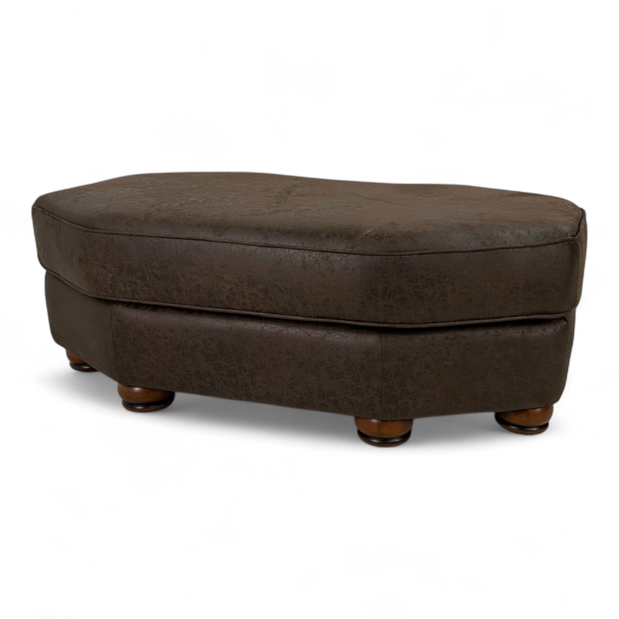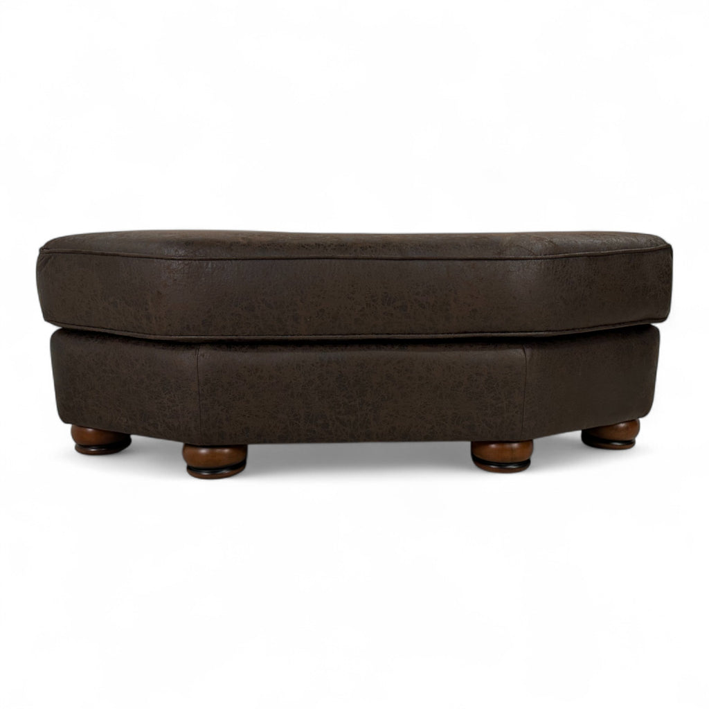 The Alden Conversation Ottoman combines effortless style with everyday function, making it the perfect companion piece for relaxed gatherings or quiet evenings at home. Upholstered in Colt Brown microfiber, it offers a rich, textured appearance with a soft hand and durable construction. Handcrafted in the USA, this ottoman showcases thoughtful detailing and a gently contoured shape that enhances both comfort and visual appeal. The dark brown leg finish adds a grounded touch of warmth, completing its inviting look.