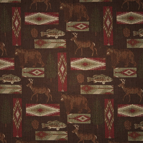 Upholstered in Palance Chestnut microfiber and Marble Stone fabric