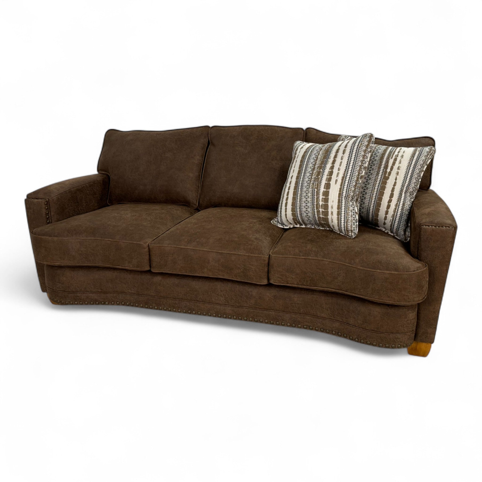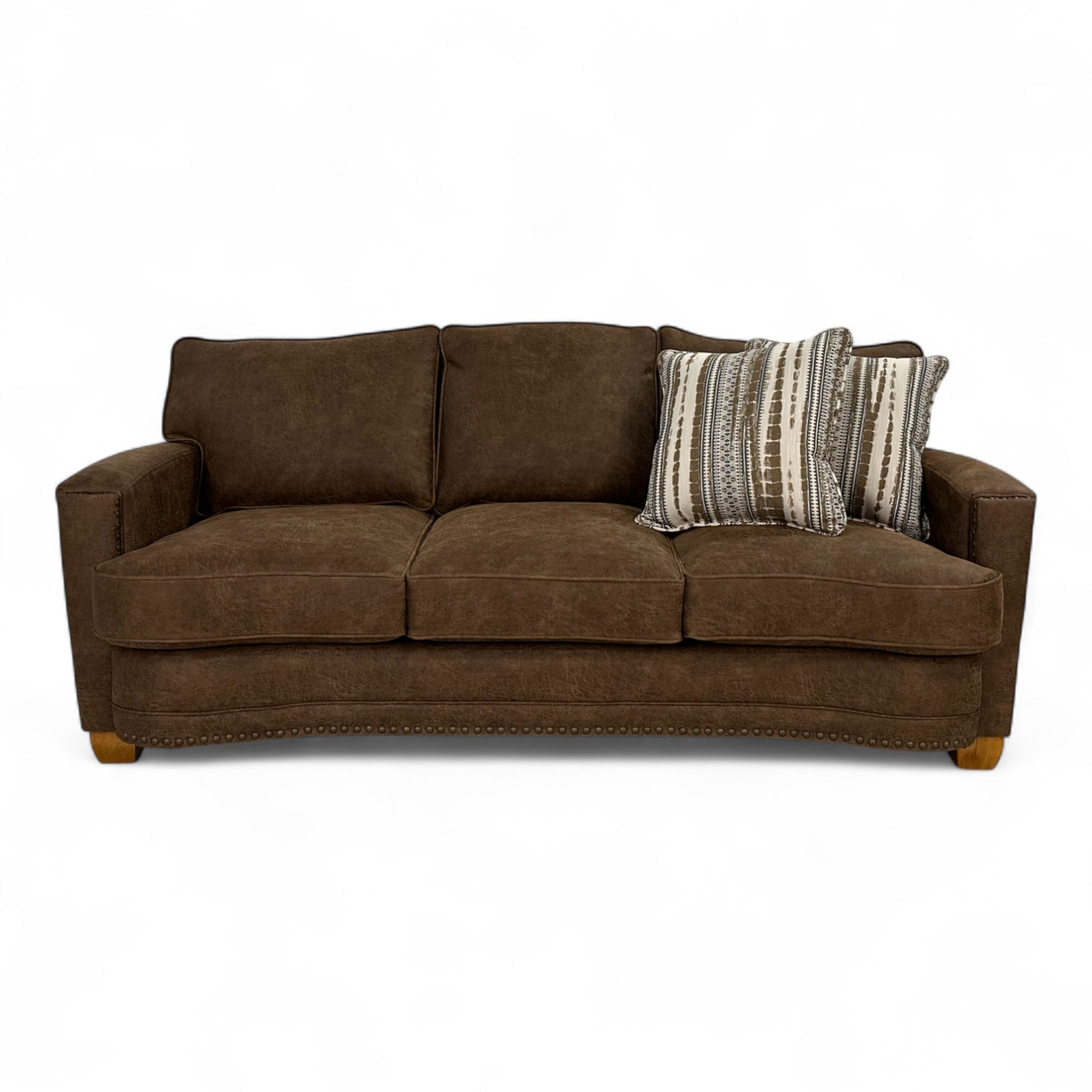 The Hollister Shibori Queen Sleeper Sofa blends tailored design with versatile function. Upholstered in rich Northwest Whiskey fabric, this piece is accented with antique brass nailhead trim and a medium brown leg finish, creating a warm and inviting presence. Handcrafted in the USA, it’s built with foam seats and Dacron-filled backs and seat tops for exceptional comfort and support.