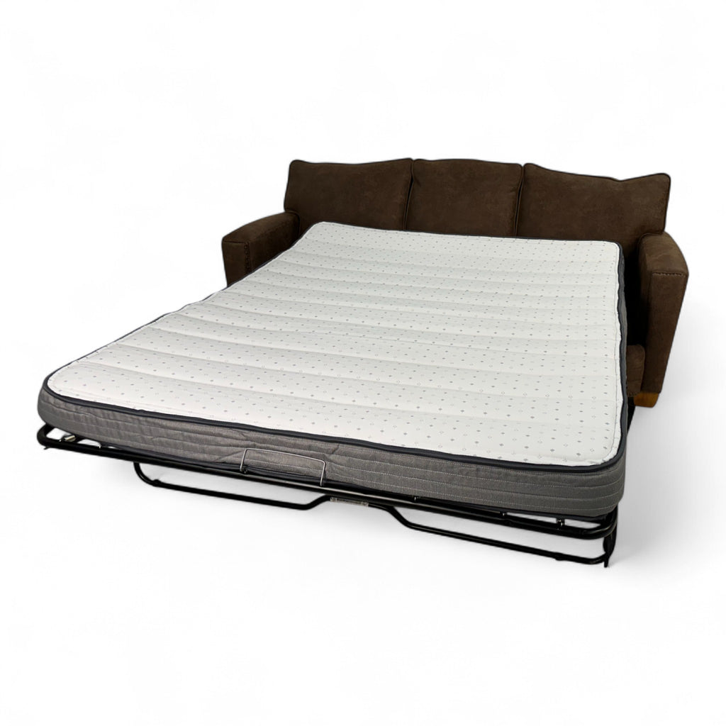 Perfect for both everyday living and hosting guests, the Hollister easily transforms into a restful sleeping space with its premium gel mattress. To complete the look, the sofa includes two 18" pillows in Shibori Camel fabric, adding texture and a subtle design accent.