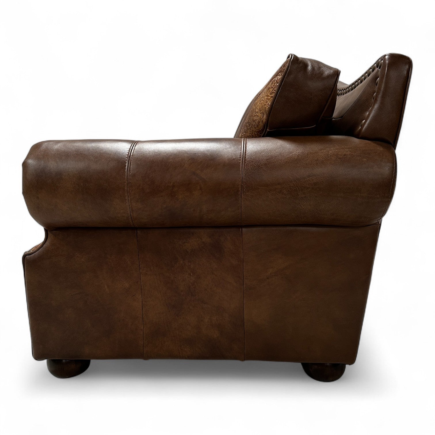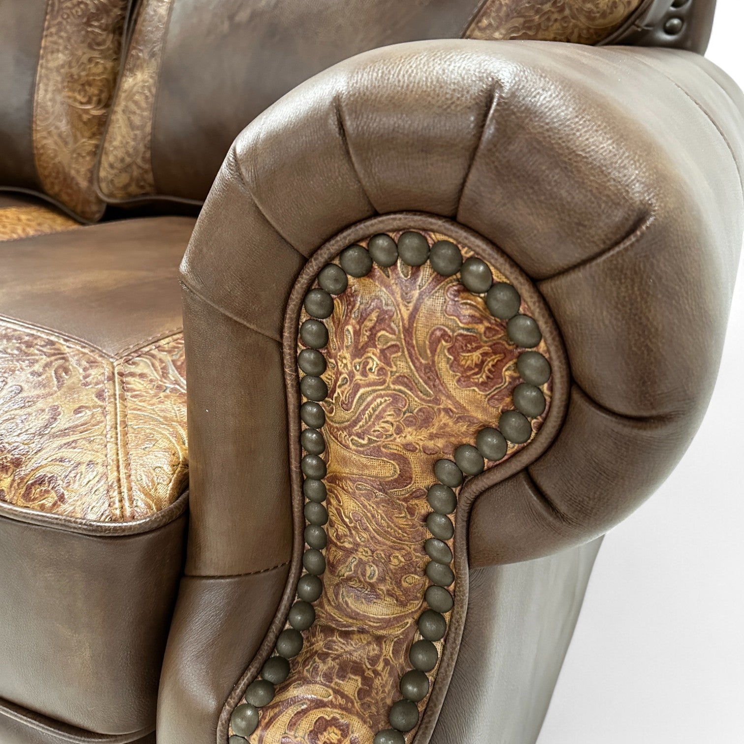 Designer tooled leather accents for added texture and contrast
